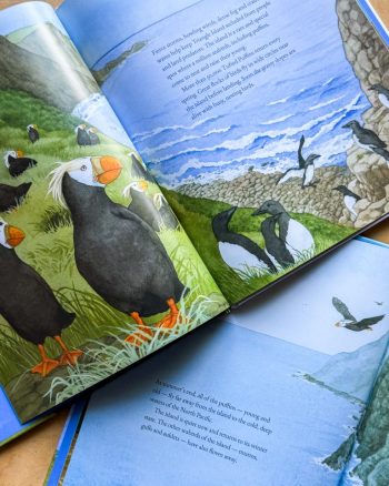 We are excited about the upcoming release of The Tufted Puffins of Triangle Island on Aug. 5. As a preview, here is an image of a couple of the interior pages — so lovely!