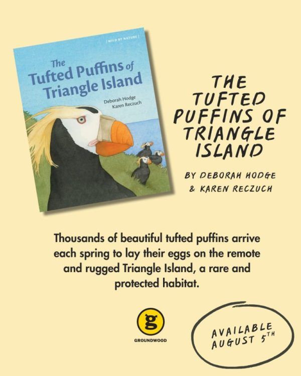 See more about these remarkable birds when The Tufted Puffins of Triangle Island, illustrated by Karen Reczuch and written by me, is released by Groundwood Books in August.